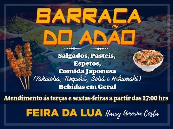 Salgados, pasteis, espetos e as maravilhas da culinária japonesa, você encontra na Barraca do Adão!!